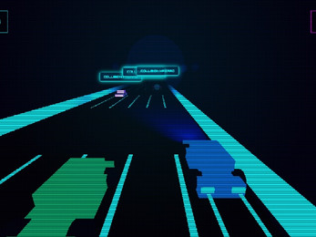 Atom Highway is a three-dimensional arcade game with an endless road in cyberpunk style. The player controls a quantum vehicle and must avoid obstacles. Blue spheres provide temporary speed boosts and increase movement speed. Warnings appear above obstacles during the first seconds of play. The goal is to survive as long as possible and accumulate points. Movement speed gradually increases over time. The game ends upon colliding with an obstacle.
