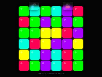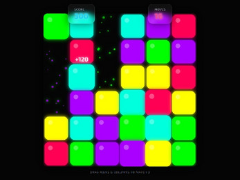 This a minimalist match-3 puzzle with a cyclic 6x6 grid. Drag entire rows or columns horizontally and vertically to form combinations of three same-colored atoms. Each move consumes a limited number of turns and awards points for every match found. Atoms explode with particle effects and vanish, making room for new ones to appear. The game ends when the move counter reaches zero. The project features a neon visual style, smooth animations, and a fully responsive layout.