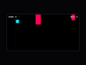 Jump up and down to dodge red obstacles.