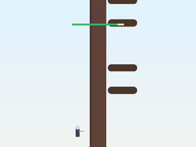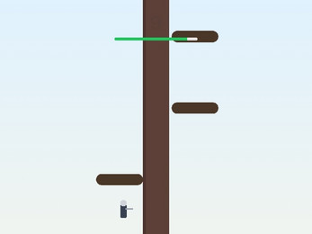 Chop the trunk left or right to make the tree fall.