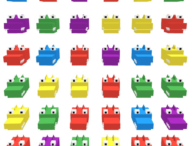 Croco Match 3D is an exciting three dimensional puzzle in the match three genre. Players must swap cute low poly crocodiles to create winning combinations. Every successful match brings the user closer to completing the current level goals. A limited number of moves forces careful planning of every action on the board. Special white crocodiles act as universal wildcards to simplify the task. Colorful graphics and smooth animation create a pleasant atmosphere for relaxation and fun. The intuitive interface allows you to quickly learn the rules and enjoy the gameplay.