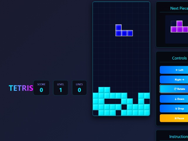 KIO Tetris is a modern browser-based version of the classic puzzle game with a neon design, a level system and convenient controls with both the keyboard and on-screen buttons.