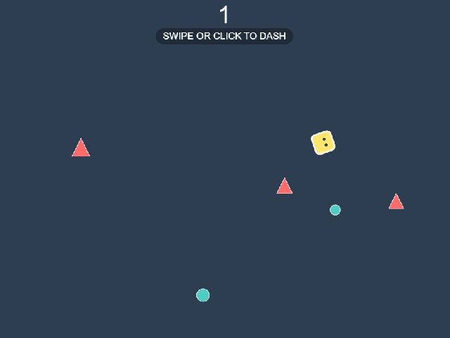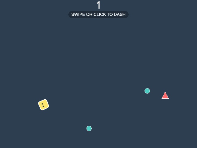 The player controls a yellow square that moves rapidly across the screen. Control is done by tapping or clicking anywhere on the field. The square instantly accelerates toward the pointed finger or cursor location.