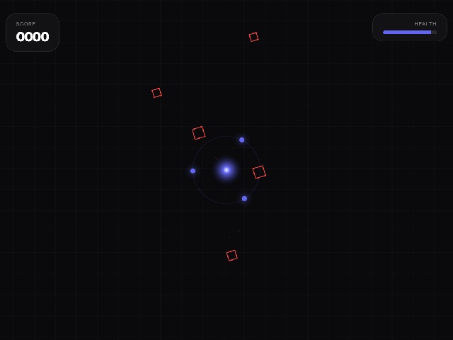 Orbital Relay is a game about defending a planet's core with three orbiting satellites. The player changes the satellites' rotation direction with a click or tap. Enemies approach the center from all sides and must be destroyed. When an enemy hits the core health decreases and destruction awards points. The game ends when the core's health reaches zero.
