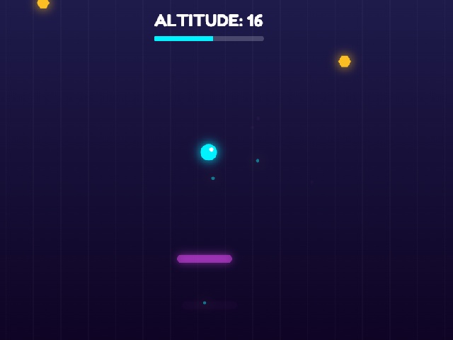 Click the mouse to create temporary platforms and prevent the ball from falling into the abyss. Collect crystals to restore energy and gain points. The world constantly moves downward increasing difficulty as altitude rises. Energy is spent on creating platforms but slowly regenerates over time. Jump from platform to platform rising higher and avoiding falls. Your goal is to reach maximum height before energy or gravity defeats you. The game ends when the ball flies off the screen. Enjoy neon graphics particles and smooth physics.