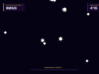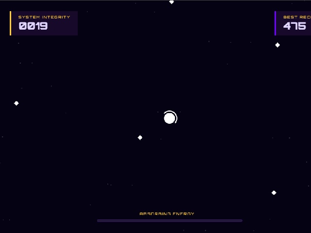 This is a space arcade game where you control a golden ship using arrow keys. Collect purple crystals to charge your energy and activate a Solar Pulse. Avoid red enemy fragments that will destroy your ship instantly. Your score increases over time and the difficulty rises every few seconds. Press the button to start and try to beat your high score.