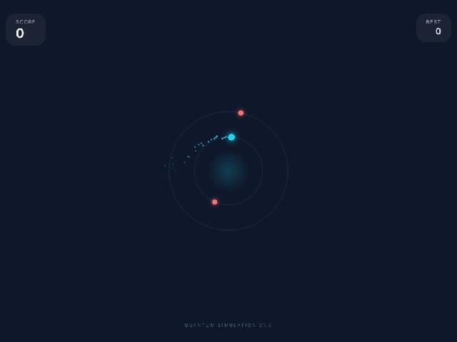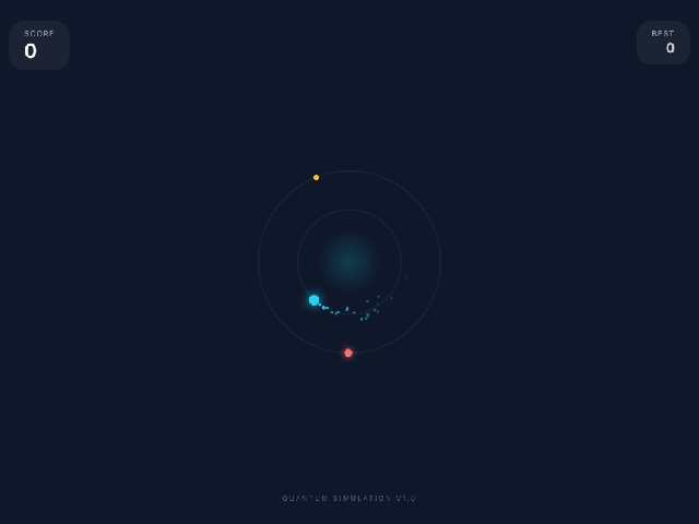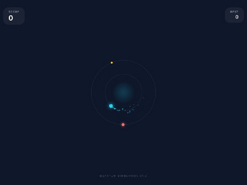Vero Orbit is a game about switching between two orbits around a central core. The player controls a dot rotating on either the inner or outer orbit. Clicking or tapping switches orbits to collect yellow sparks and avoid red enemies. Colliding with an enemy ends the game while collected sparks increase the score. Enemy rotation speed gradually increases with each point.