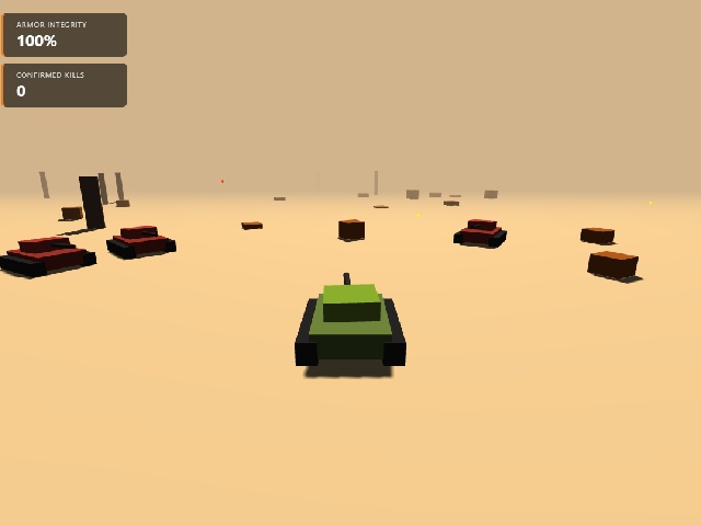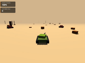 Enemy tanks spawn in waves and attack back reducing health. The goal is to destroy as many enemies as possible before armor runs out.
