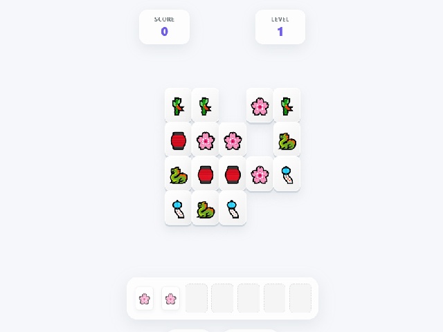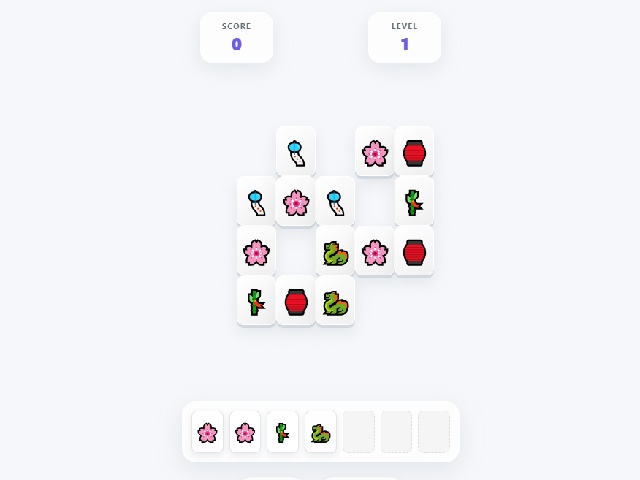 This a symbol matching game in a three dimensional layout. The player collects tiles into a special collection bar at the bottom of the screen. Every three identical symbols collected in the bar award points. The game ends in defeat if the collection bar fills up with seven symbols. The level increases after completely clearing all tiles from the game board. Hints and tile shuffling are available to assist the player.