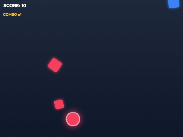 The player controls a white sphere inside a shrinking space. A mouse click pushes the sphere away from the cursor. Collecting glowing cores expands the play area and increases stability. The game ends when the walls completely close in on the sphere.